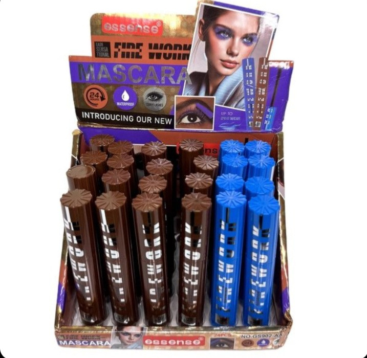 ریمل قهوه ای و آبی پر مواد ، غلیظ و روان که بدون ریزش است و ضد آب و تعریق می باشد و با براش مخصوصی که دارد مانع از چسبیدن مژه ها و پخش و چسبیدن ریمل به مو می شد